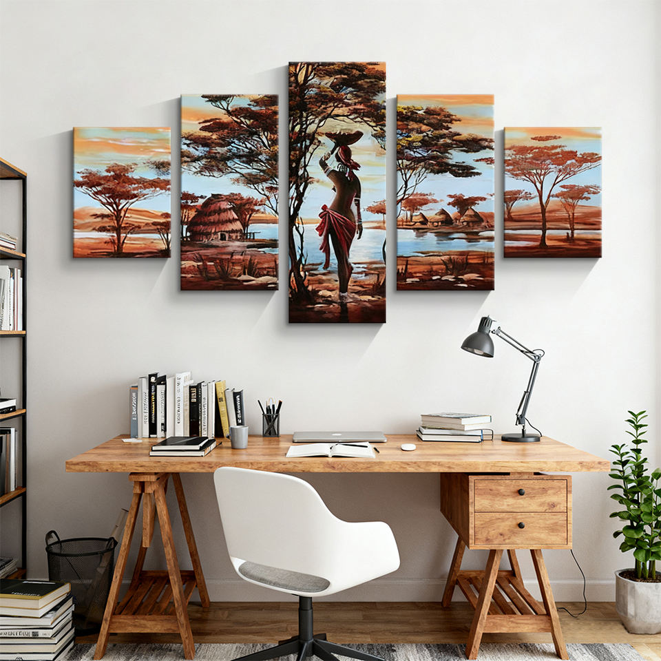 Moderno CONJUNTO DE 5 piezas abstracto africano Mujer paisaje lienzo arte pintura personalizada sala de estar decoración del hogar pintura de pared