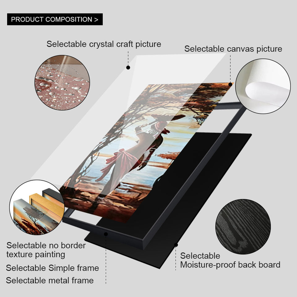 Material:Lienzo / Cristal S / Marco PS / Marco de aluminio / Marco de pino
