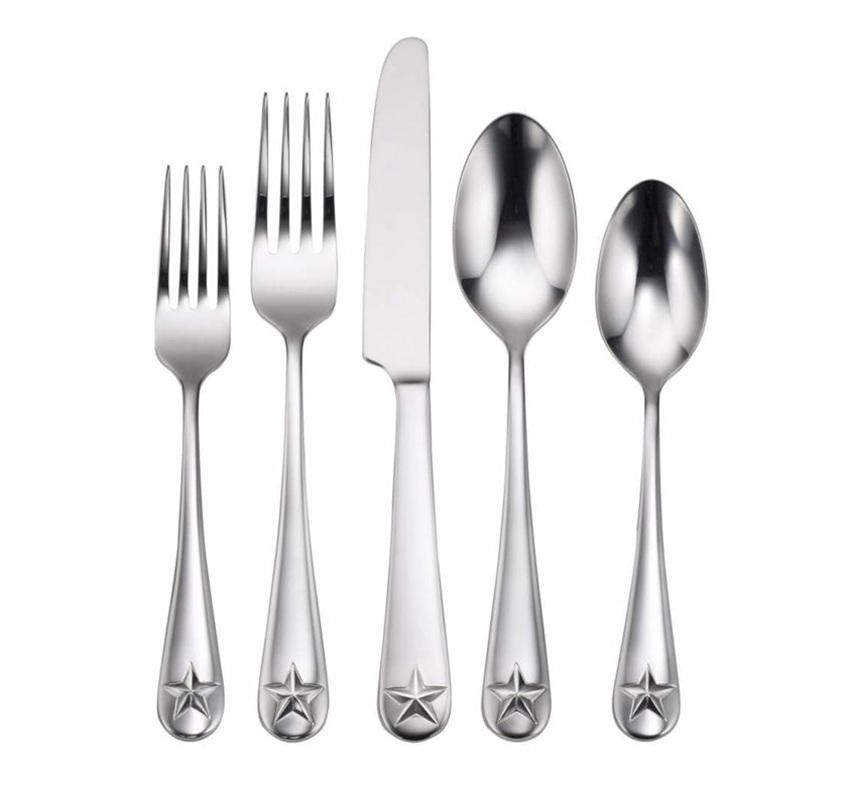 Juego de Cubiertos Moderno de 5 Piezas de Acero Inoxidable, Diseño Oriental Novedoso, Acabado Pulido, Apto para Lavavajillas, Cuchillos para Fiesta de Navidad con Grabado Láser
