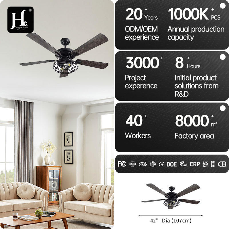Ventilador de Techo Industrial Moderno de 52 Pulgadas con Jaula, Luz LED y Control Remoto Inteligente para Sala de Estar