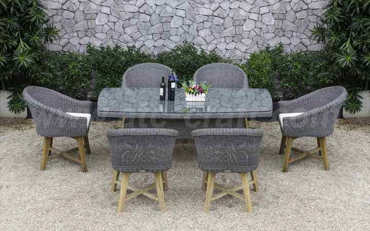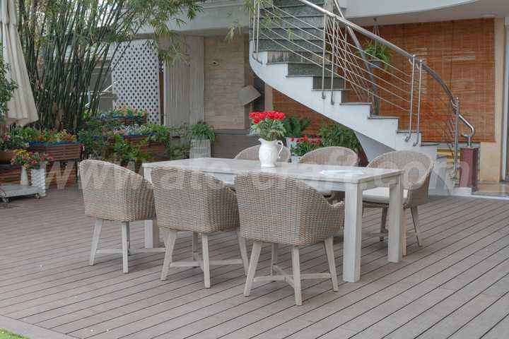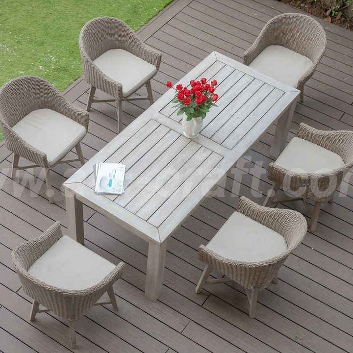 Moderno Juego de Comedor de Mimbre de Ratán PE de 6 Piezas, Elegante Mesa de Madera para Jardín, Patio o Cocina, para Uso en el Hogar o Hotel