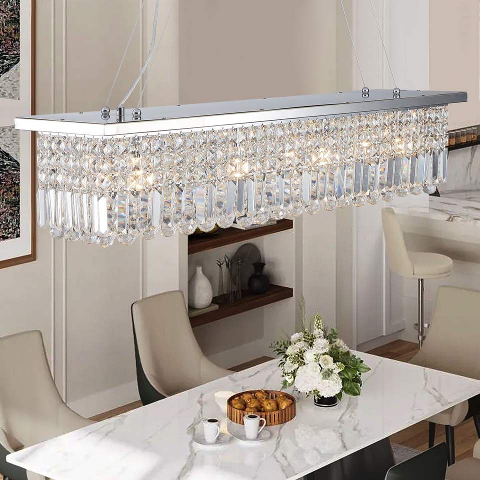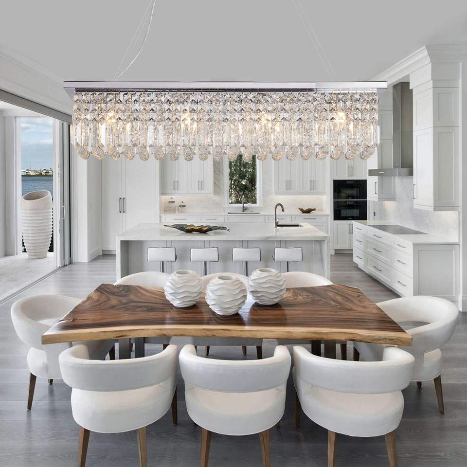 Lámpara de Araña Moderna de Cristal Blanco Rectangular de 8 Luces, Lámpara Colgante Rectangular Contemporánea para Comedor, Diseño Chic de Gotas de Lluvia