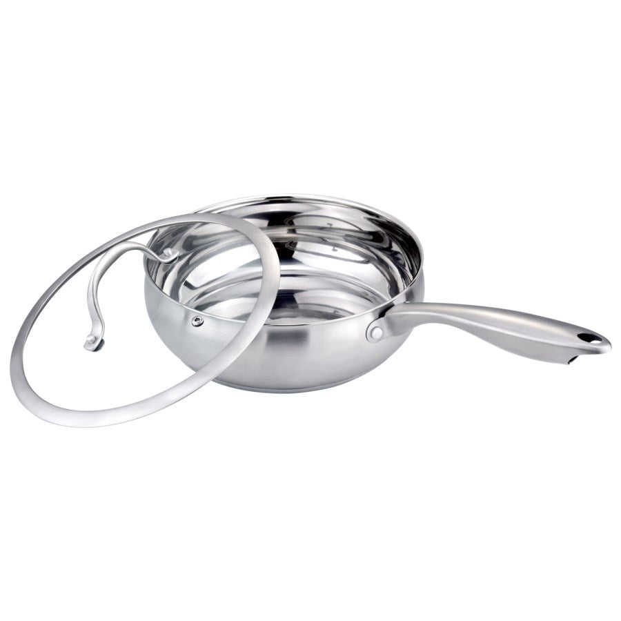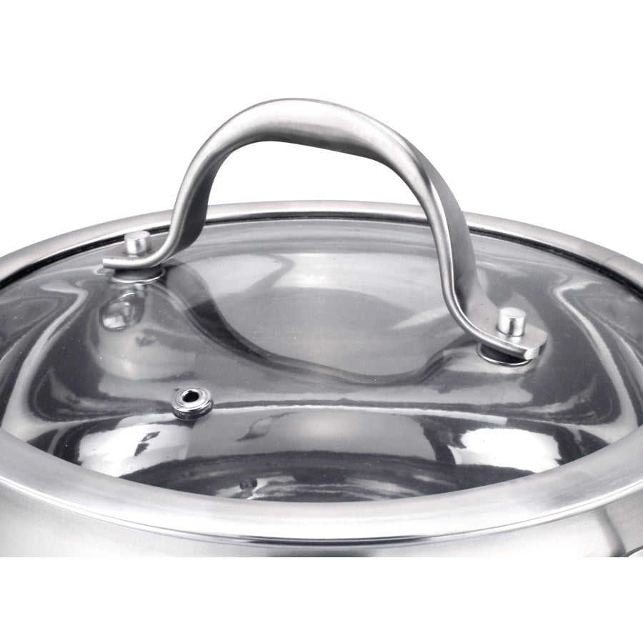 Sartén Moderna de Acero Inoxidable de 9.5 Pulgadas con Triple Capa, Tapa de Vidrio y Tapa Plateada de Grado Profesional