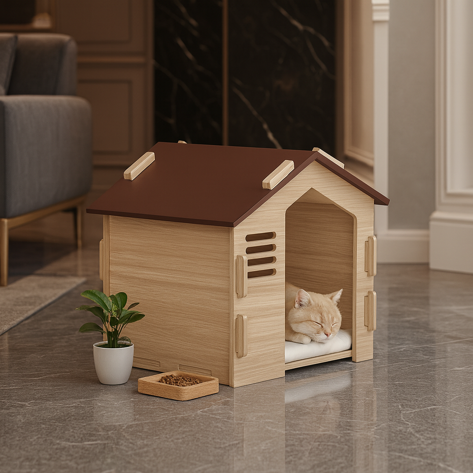 Casa de mascotas fija AC17 moderna con Patas antideslizantes, textura suave y paneles duraderos, proveedor OEM de Vietnam