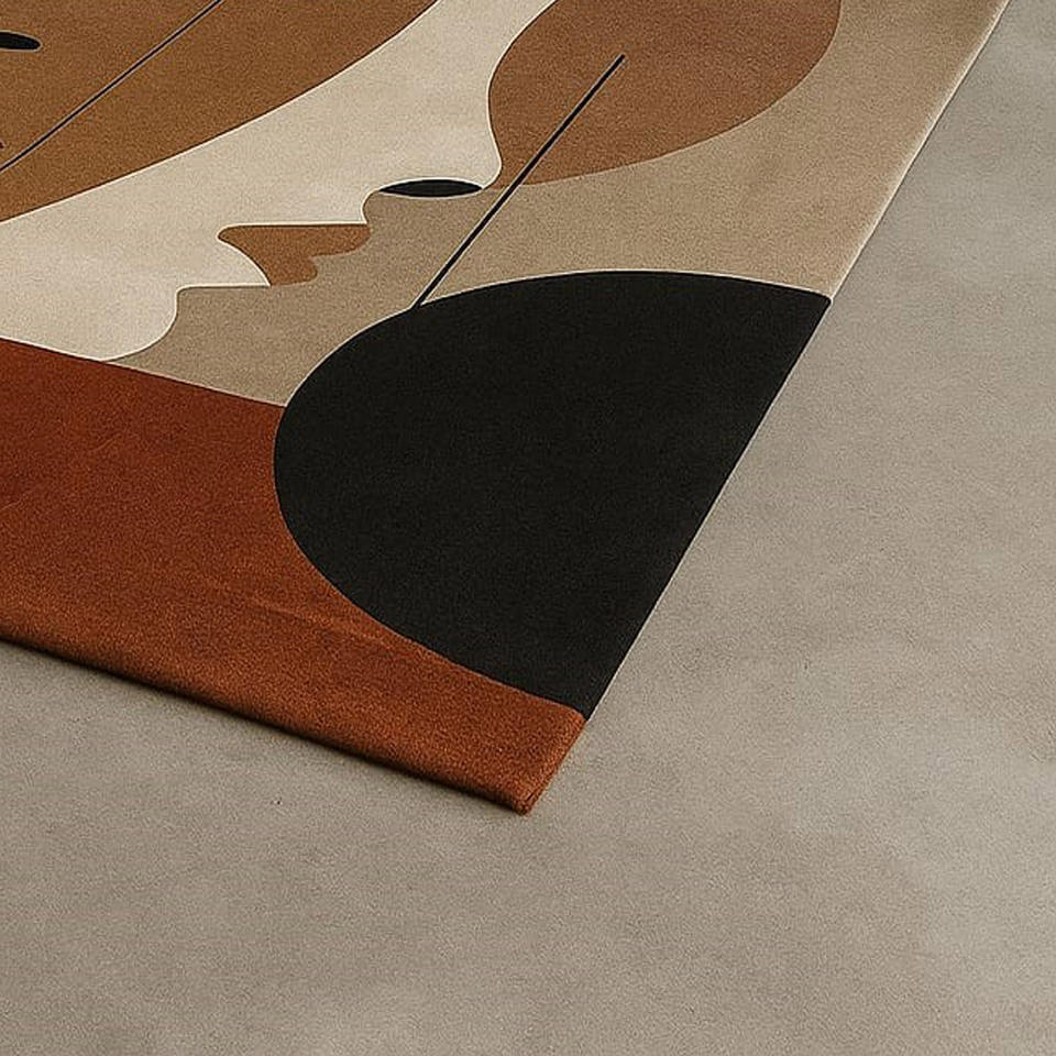 Alfombra moderna con diseño de cara abstracta, Alfombra de lana con mechones a mano para sala de estar y dormitorio, regalo de Navidad, Picnics, Año Nuevo