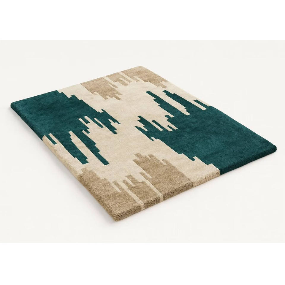 Alfombra de lana geométrica abstracta moderna alfombra de mano Beige verde bronceado para decoración del hogar para sala de estar dormitorio revestimiento de suelo hecho