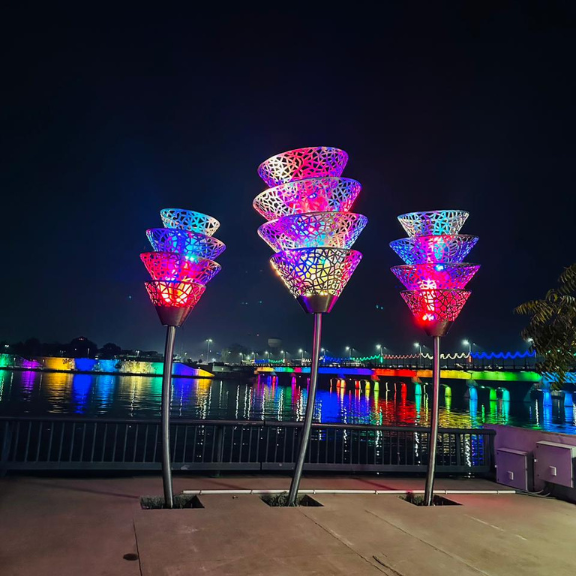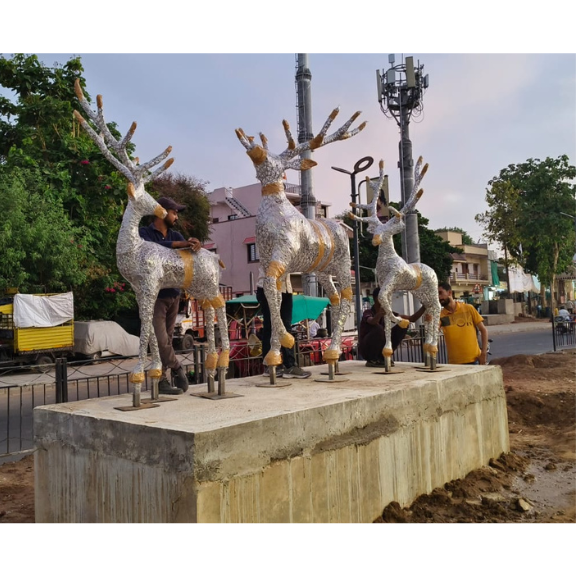 Escultura abstracta moderna de acero inoxidable | Decoración de Arte de diseño vertical ecológico resistente a la intemperie al aire libre