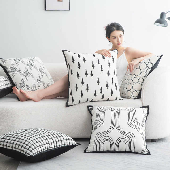 Funda de almohada con diseño abstracto moderno, funda de almohada trasera de gama alta, funda de almohada blanca y negra, funda de cojín de lujo decorativa para sala de estar