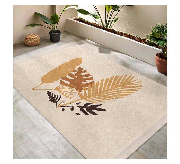 Alfombra Moderna Abstracta con Diseño de Hojas Tropicales, Minimalista, de Poliéster Suave Antideslizante para Sala de Estar y Dormitorio