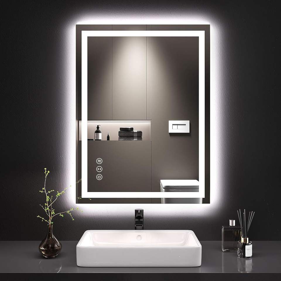 Espejo Inteligente LED Moderno para Baño, Rectangular, sin Marco, con Color Ajustable, Antivaho, Retroiluminación de Alta Definición y Grado IP44