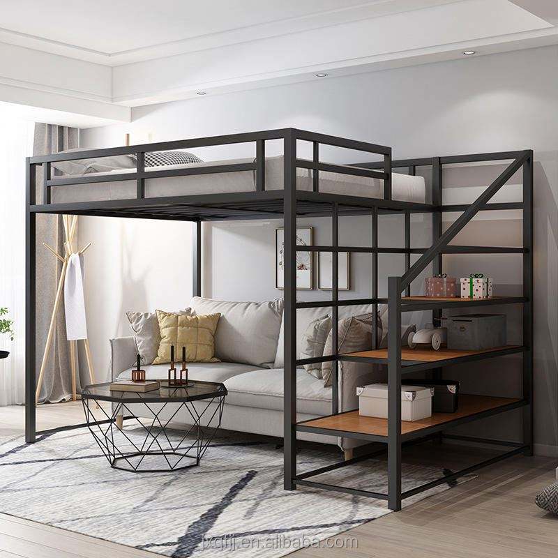 Cama Litera Plegable Ajustable Moderna, Tamaño King, para Adultos, Uso en Dormitorios Escolares, Construcción de Hierro y Acero, con Escaleras, Ensamblada
