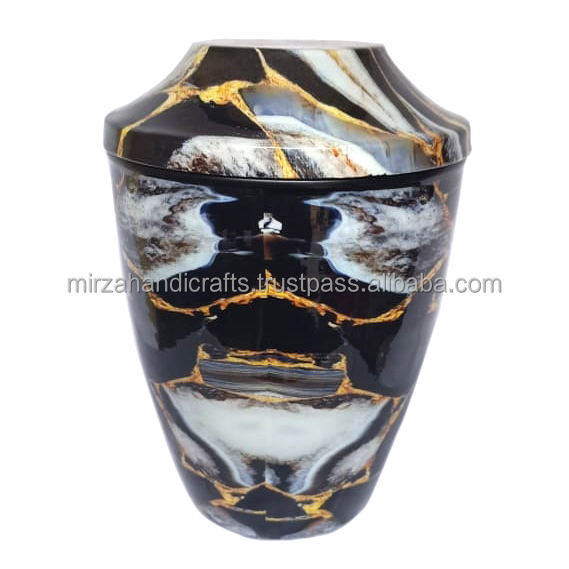 Urna de cremación hecha a mano para cenizas de humanos, diseño de mármol verde y blanco, luz funeraria moderna para adultos