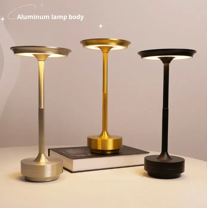 Lámpara de Mesa LED Moderna, Totalmente de Aluminio, con Control Táctil, Recargable por USB, Regulable, Funciona con Batería, para Camping y Mesita de Noche
