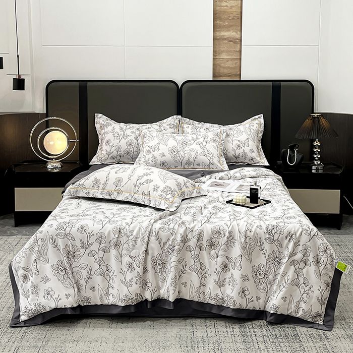 Juego de Edredón de Verano de 4 Piezas con Diseño Moderno de Animales/Plantas, Transpirable, de Poliéster, para el Hogar y Bodas
