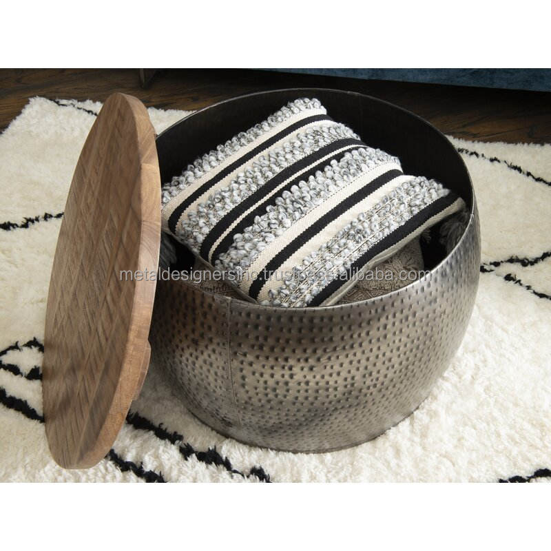 Mesa de centro antigua moderna con característica extensible, tambor de madera de Metal, diseño martillado para decoración del hogar, almacenamiento de muebles de sala de estar