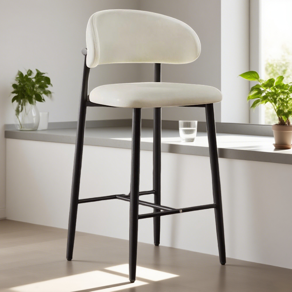 Taburete de bar moderno sin brazos, altura de mostrador, cómodo y acolchado, con estructura metálica, para comedor, cocina, sala de estar o hotel.
