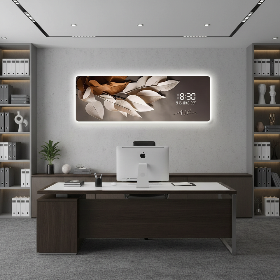 Reloj de Pared con Iluminación LED de Estilo Art Deco Moderno, Arte Creativo de Pared con Placa de Cristal de Carbono y Metal para Oficinas y Espacios Educativos