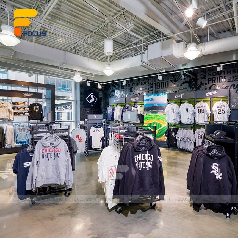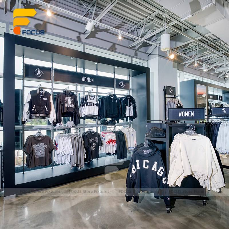 Tienda de ropa deportiva moderna, diseño de interiores, estante de exhibición de ropa personalizado, tienda de deportes de moda, accesorio, ropa, muebles de Boutique