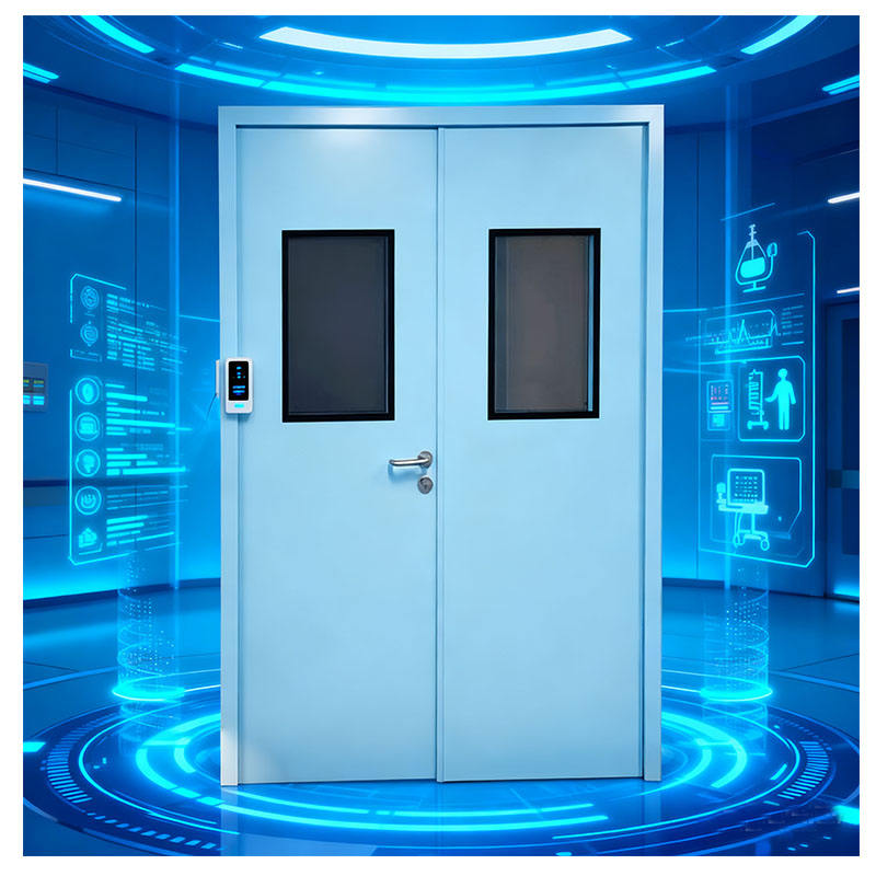 Puerta de sala limpia médica automática moderna, purificación de polímero de supermercado, puerta de acero de madera de vidrio, hierro forjado para Hospital