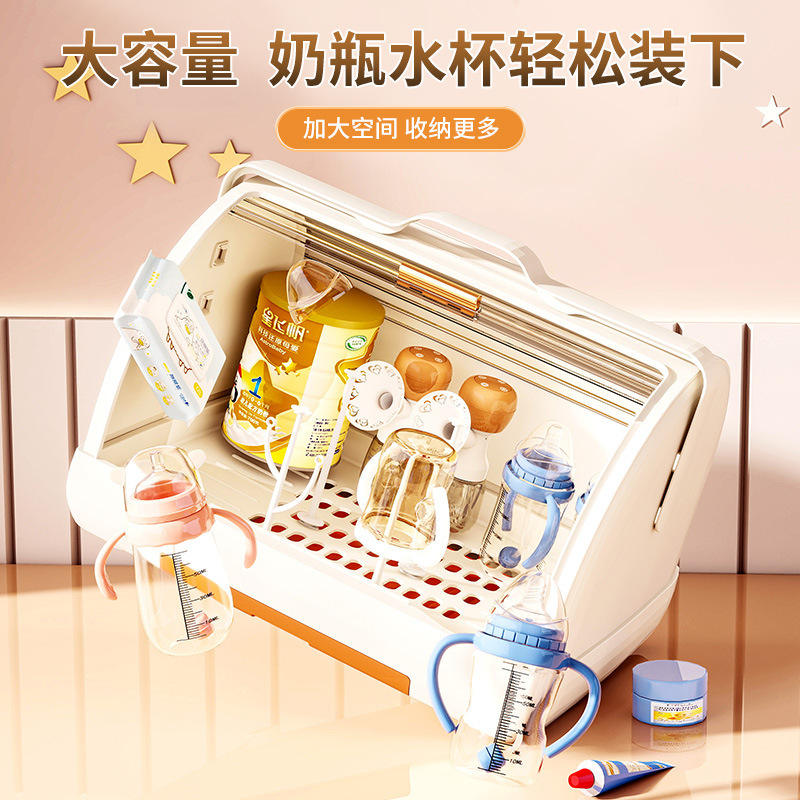 Caja de almacenamiento moderna para biberones, drenaje a prueba de polvo, Material PP, vajilla, estante de secado de alimentos suplementario, almacenamiento exclusivo de inyección