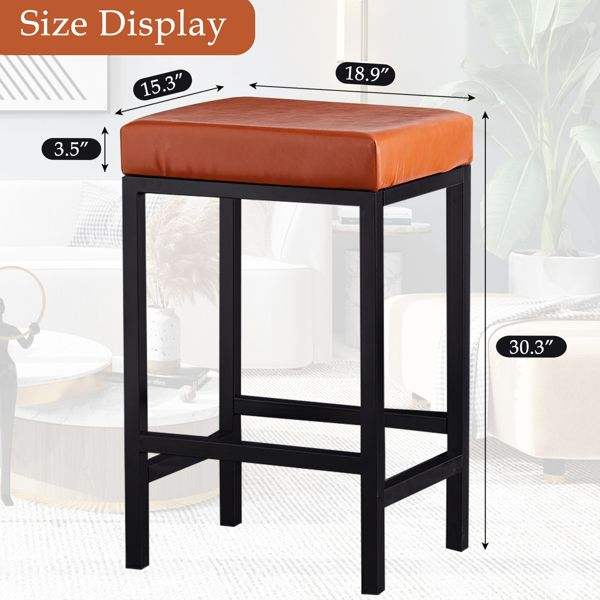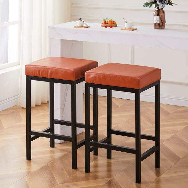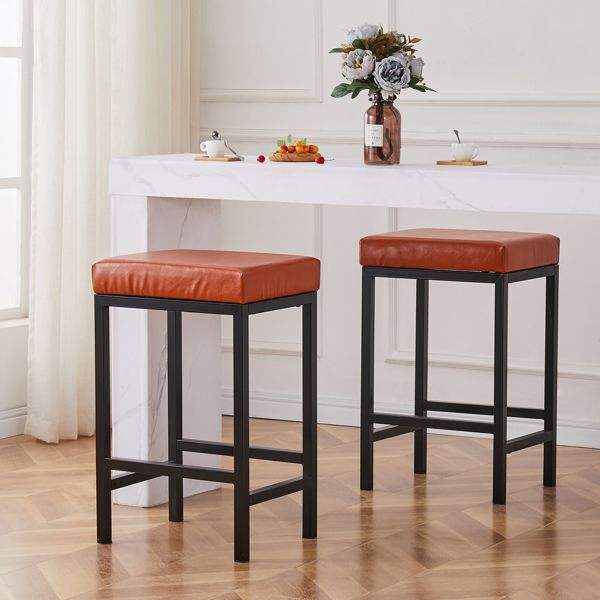 Taburetes de Bar Modernos, Taburetes de Barra sin Respaldo de Cuero Sintético, Sillas Tapizadas de Metal para Isla de Cocina, Taburetes Altos para Barra de Cocina