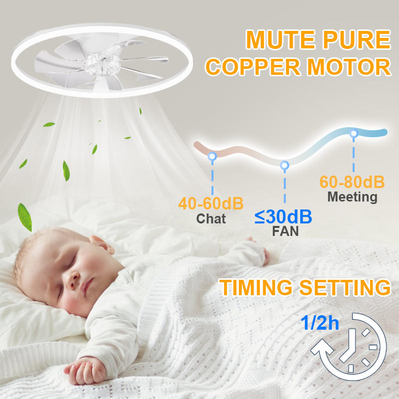 Ventilador de Techo Moderno de 7 Aspas para Dormitorio con Luz LED de 3 Colores (3000K/4000K/6500K), Motor de CC de 6 Velocidades, Cuerpo de Acrílico, Control Remoto y por Aplicación