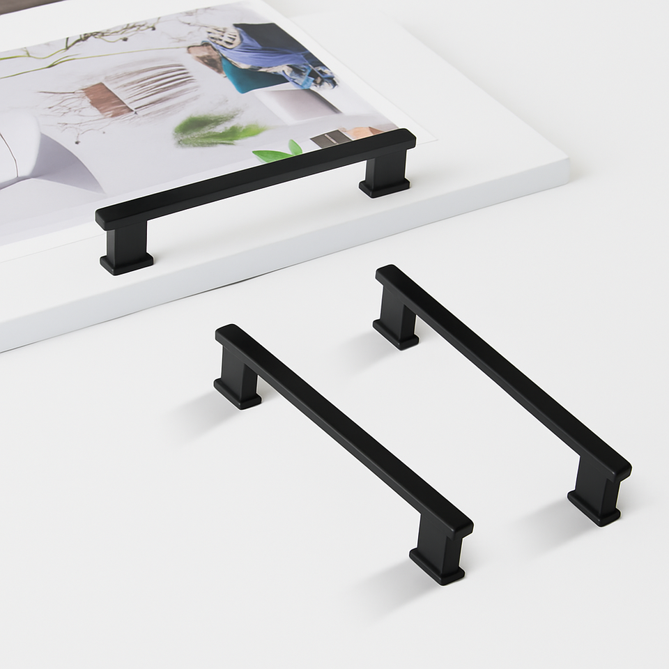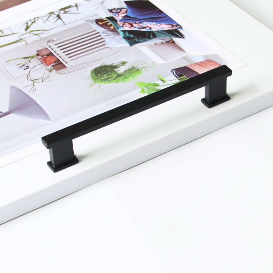 Tiradores rectangulares negros modernos para armario de bar, tiradores de cajón de aleación de aluminio para cocina, comedor y baño
