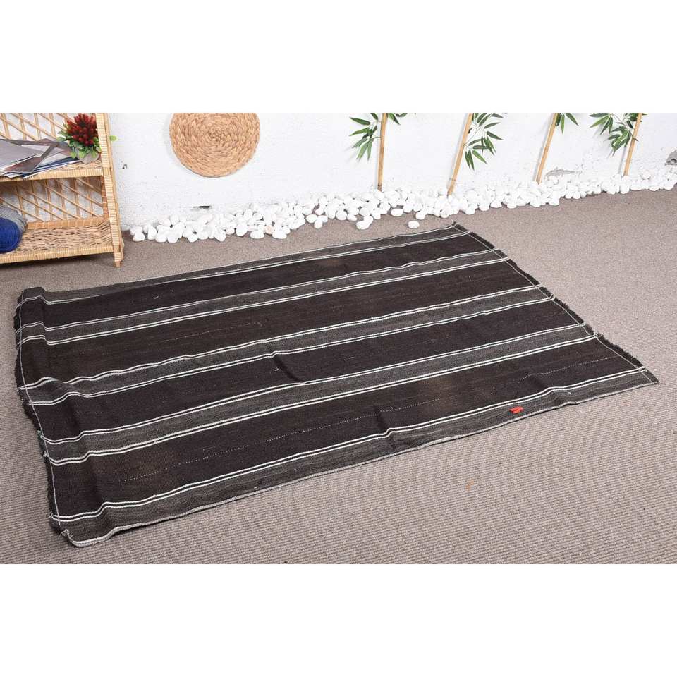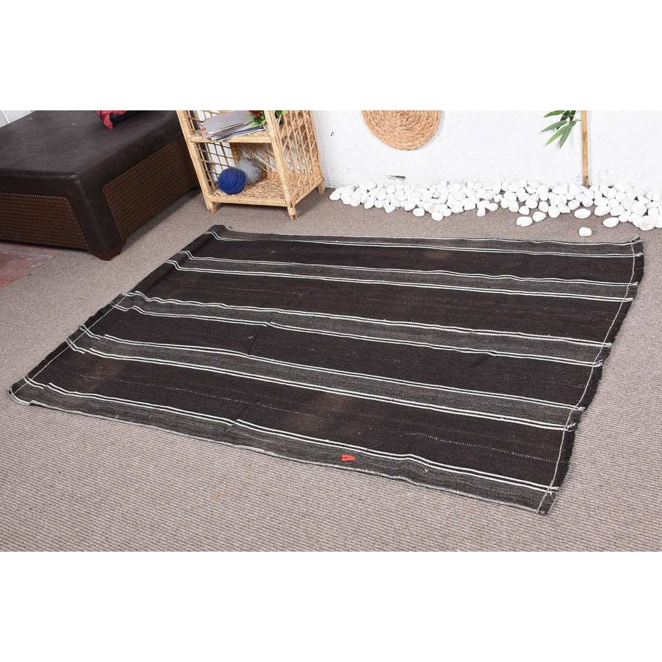 Alfombra de lana a rayas blanca y negra moderna para cabecera de entrada, felpa Rectangular de 4x5,9 pies con respaldo de látex, patrón de retazos de verano