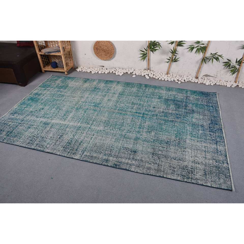 Alfombra Moderna de Lana y Poliéster Azul, Hecha a Máquina, Antideslizante, de Pelo Medio, con Látex (5.3 x 8.7 Pies), Rectangular, Diseño Tradicional de Patchwork