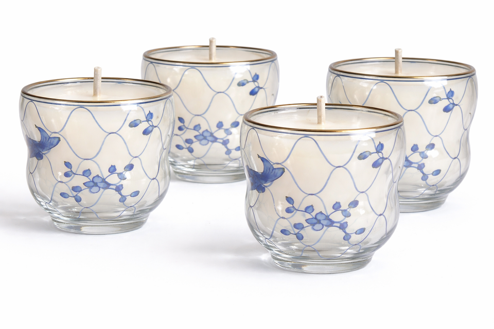 Vela Aromática Moderna en Frasco de Parafina con Patrón Azul para Salas de Estar, Dormitorios, Restaurantes, Spas, Bodas, Navidad y Fiestas