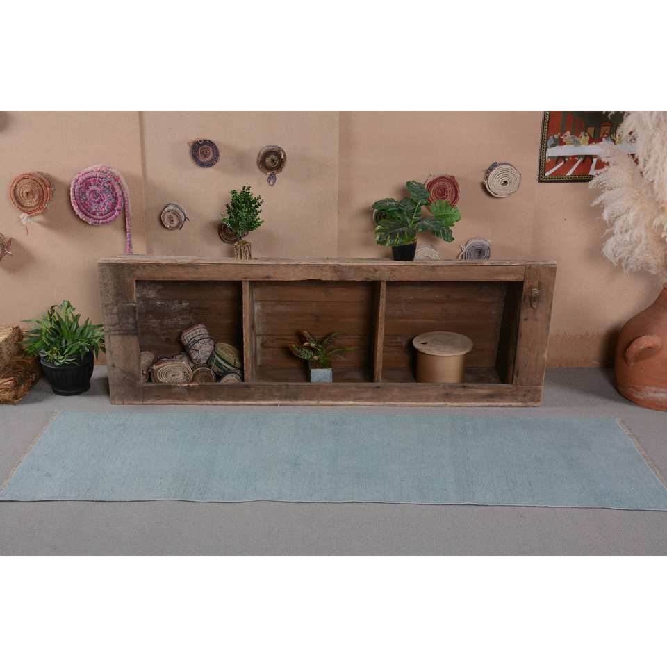 Alfombra turca Vintage azul moderna, 2,2x7,5 pies, lana hecha a mano, diseño de retazos abstractos, látex con forma de pasillo rectangular para habitación de coche