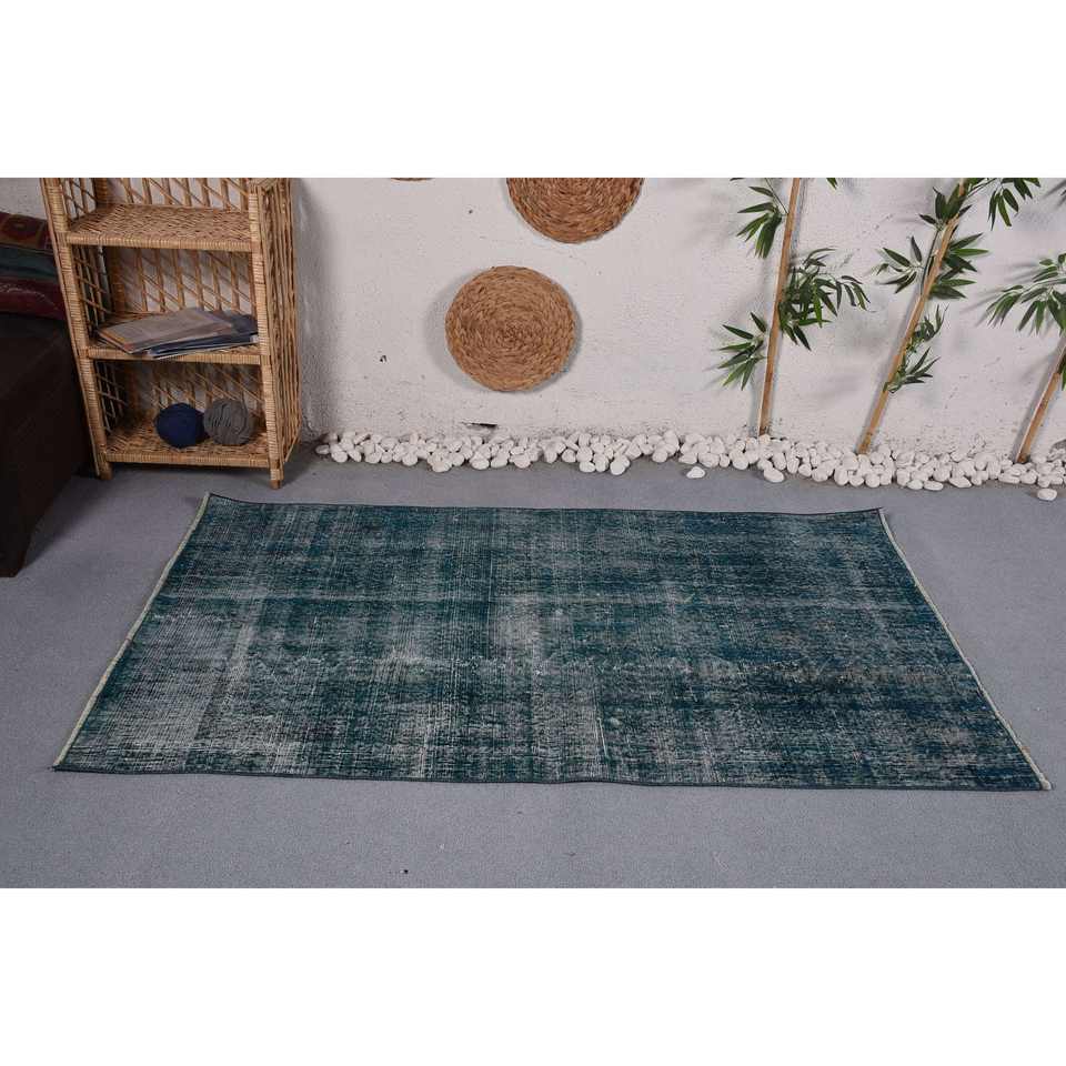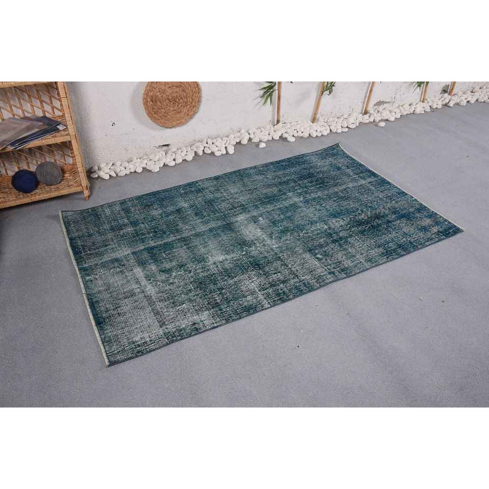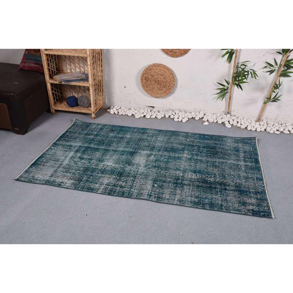 Alfombra moderna de lana azul-Diseño de retales hecho a mano de 3,6x5,9 pies para sala de estar Dormitorio Respaldo de látex Patrón rectangular abstracto
