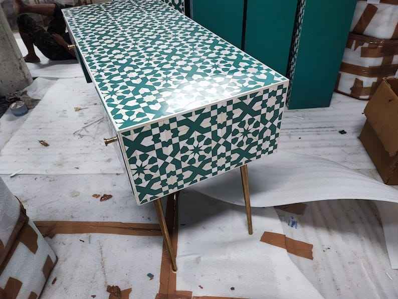 Mesa de consola moderna con incrustaciones de hueso para el hotel de la escuela en casa-Fabricación de mayorista directo para la decoración del dormitorio de la sala de estar