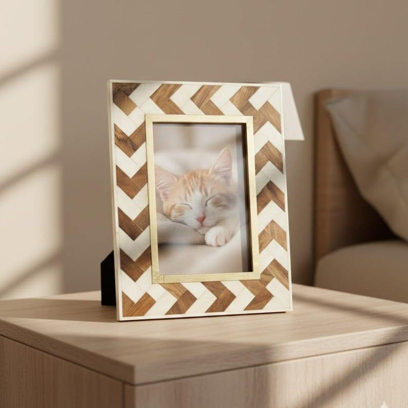 Marco de Fotos Moderno con Incrustaciones de Hueso, Hecho a Mano por Artesanos