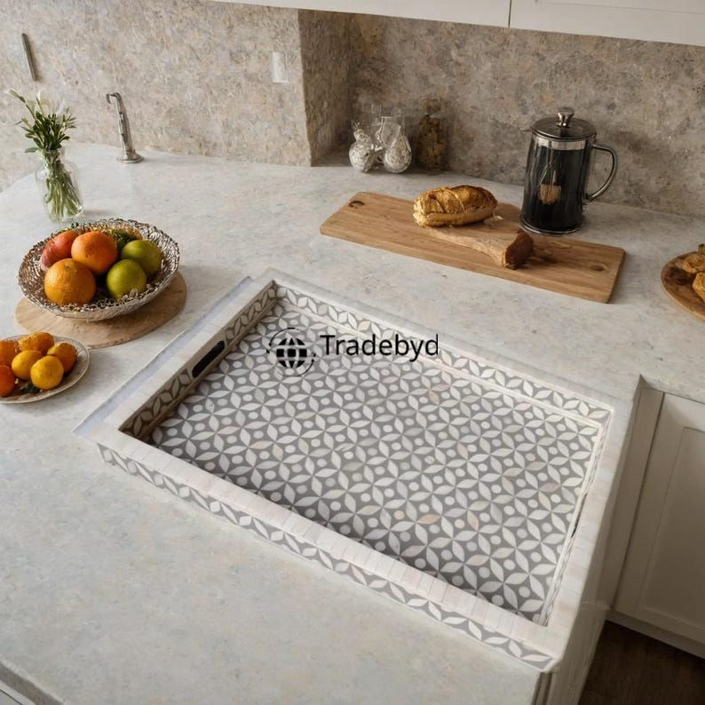 Bandeja Moderna con Incrustaciones de Hueso, Decorativa y Premium, para Mesa de Comedor, Estilo Elegante, Móvil, para Regalos y Servir, por Tradebyd