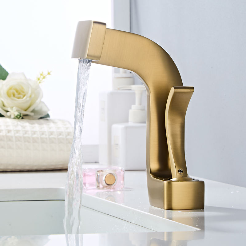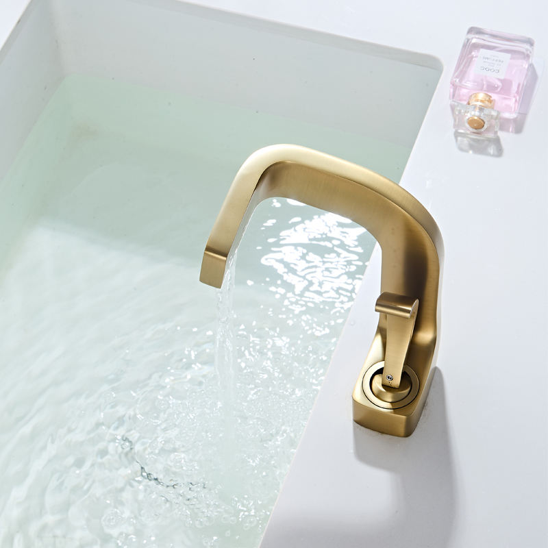 Grifo de lavabo moderno de latón con válvula cerámica, de un solo orificio, para montaje en encimera, tipo cascada, con agua fría/caliente para baño