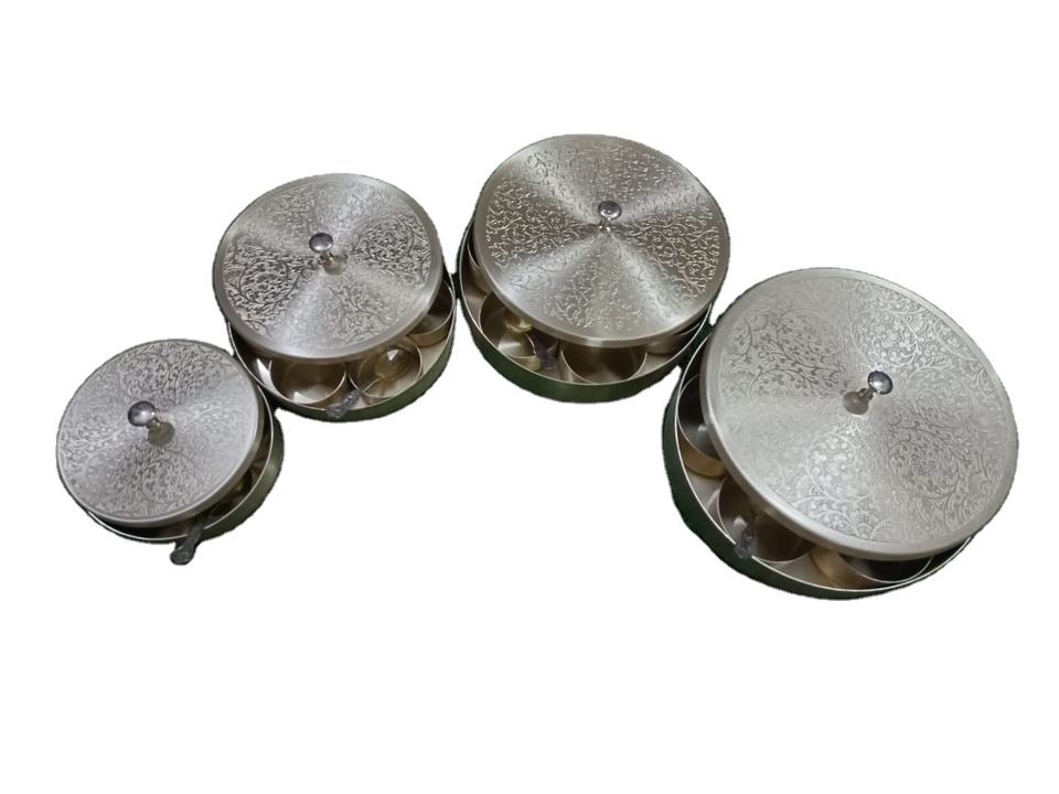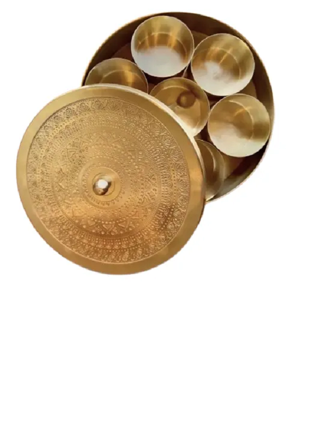 Juego de caja de especias de latón moderno, 7 contenedores y 1 cuchara con tapa, cocina casera, almacenamiento de Metal Dani Masala