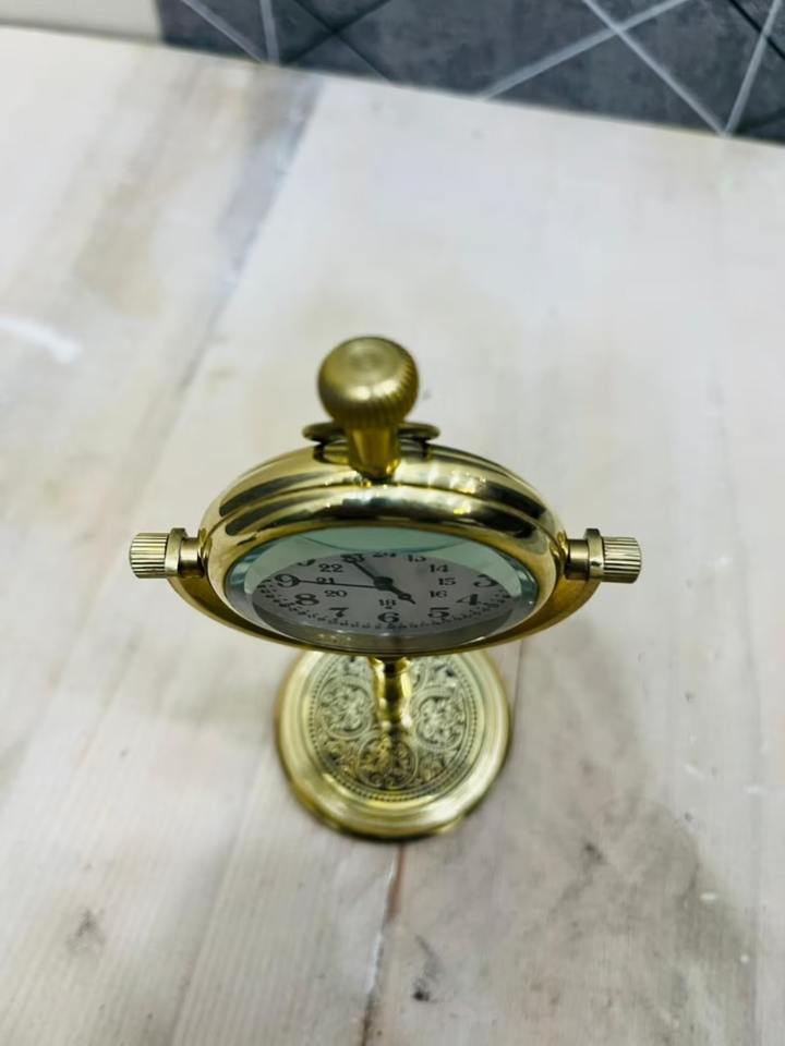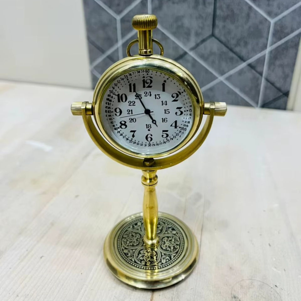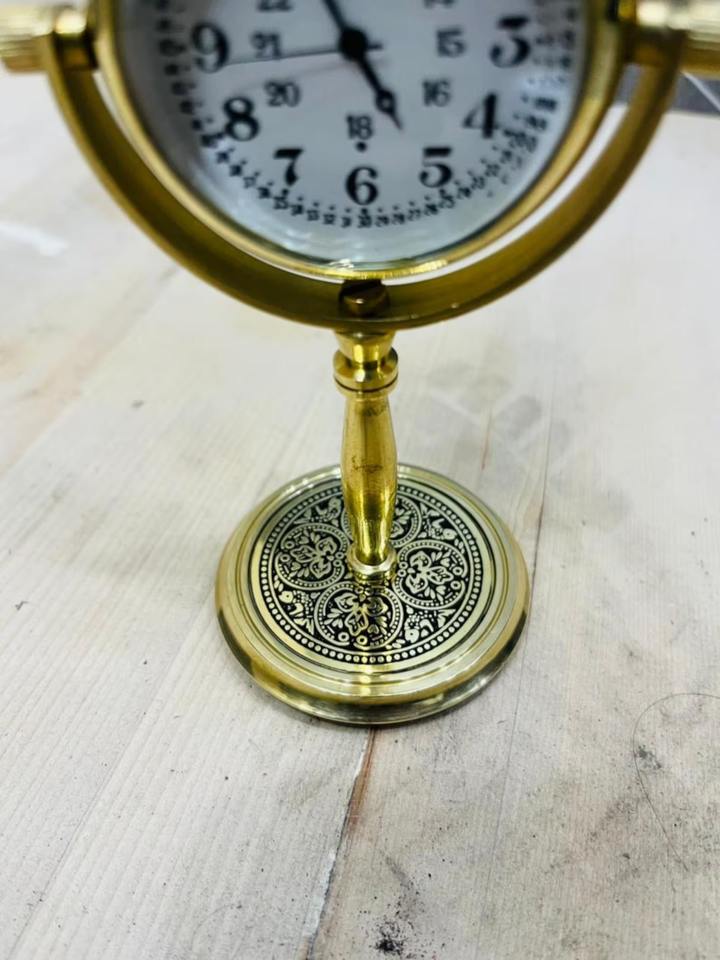Reloj de Mesa Moderno de Latón con Base de Diseño, Hecho a Mano y Portátil, Regalo Promocional - ARTESANÍA DEL TESORO DEL MUNDO ANTIGUO BC-003
