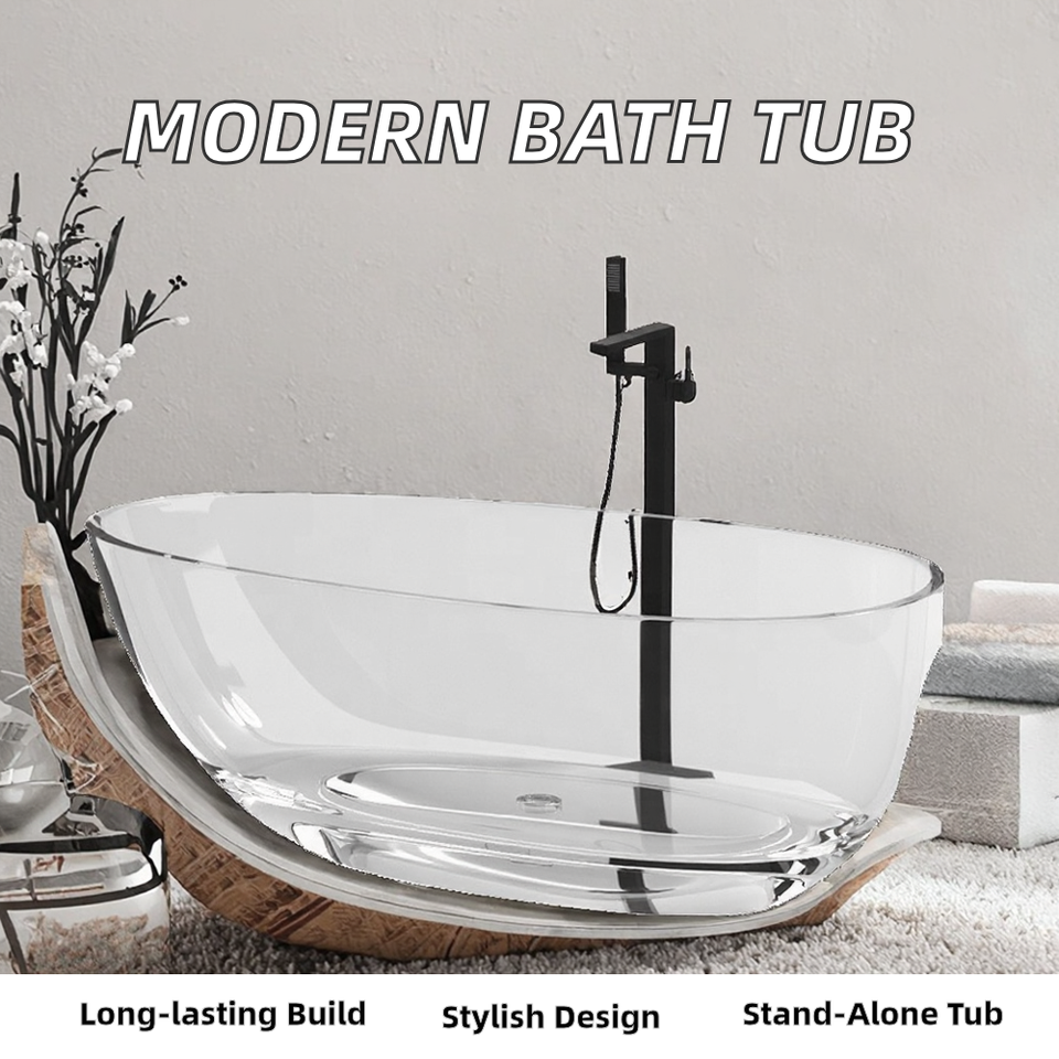 Moderna Bañera de Hidromasaje Independiente Rectangular COMO, Bañera de Resina de Superficie Sólida Transparente, para Uso en Hoteles, 95 Jets, Capacidad de 1220L