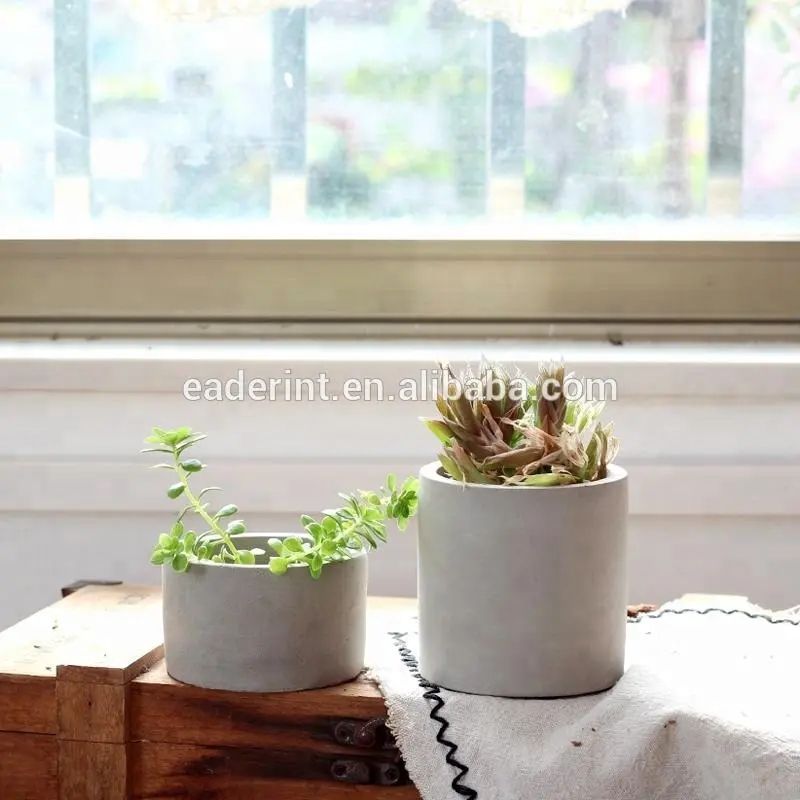 Maceta cilíndrica gris de cemento para jardín, para decoración del hogar
