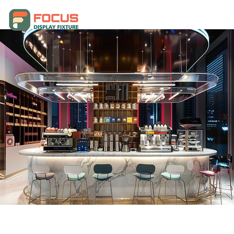 Mostrador de Servicio Moderno para Cafetería, con Frente de Vidrio Templado, Área de Exhibición de Granos de Café, Mostrador de Servicio para Tienda