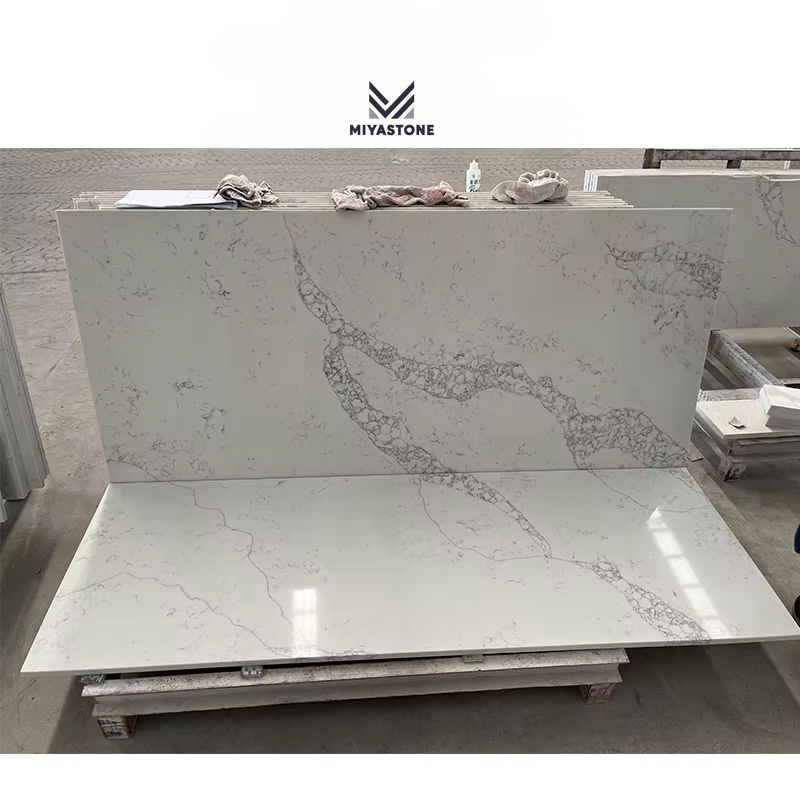 Encimera de Cuarzo Blanco Calacatta Moderna para Baño y Uso Hotelero, Grosor de 12 mm a 30 mm, Garantía de por Vida