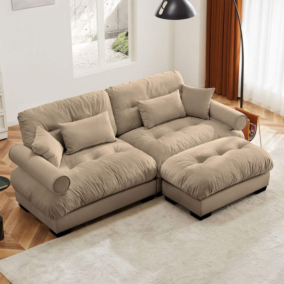 Sofá de terciopelo de dos plazas de color camello moderno, reposabrazos, almohada de cintura para sala de estar, sala de lectura, Loft, dormitorio pequeño