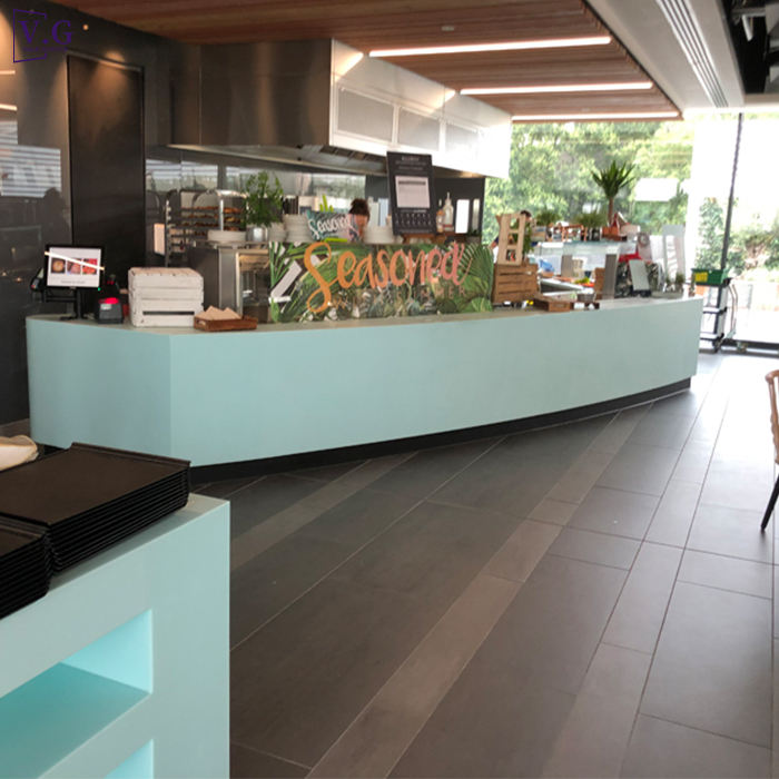 Mostrador de Caja Moderno para Restaurante, Mostrador de Caja para Cafetería Hecho de Piedra de Superficie Sólida de Alta Calidad