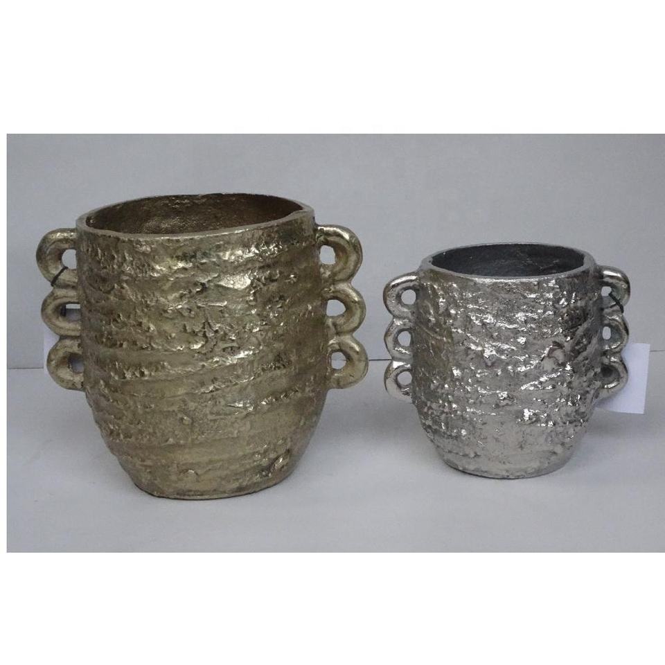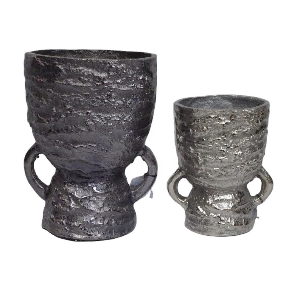 Jarrón de mesa de aluminio fundido moderno, artesanías de metal con acabado negro y plateado para decoración del hogar