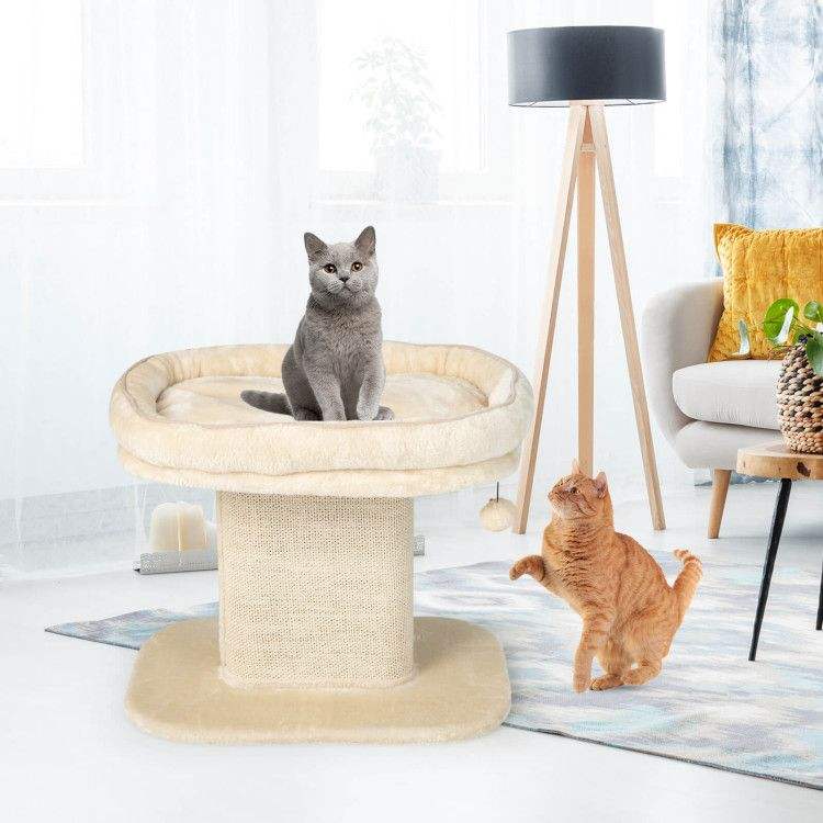 Árbol rascador moderno para gatos con gran plataforma de felpa y placa rascadora de sisal