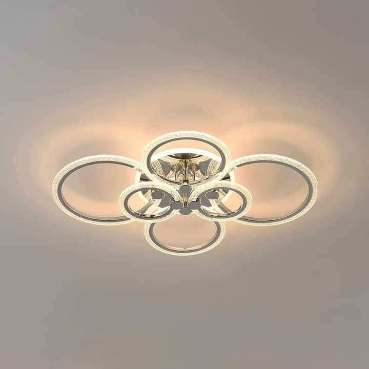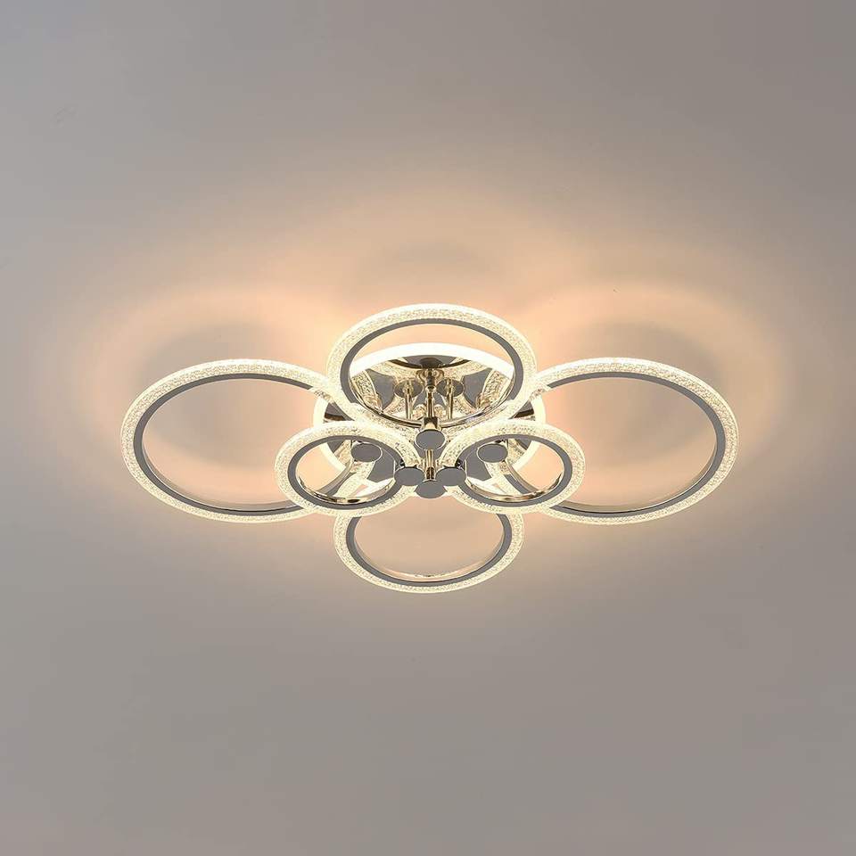 Lámpara de techo moderna de 58W, luz LED empotrada regulable, 4 anillos, colgante de techo acrílico, para sala de estar y comedor