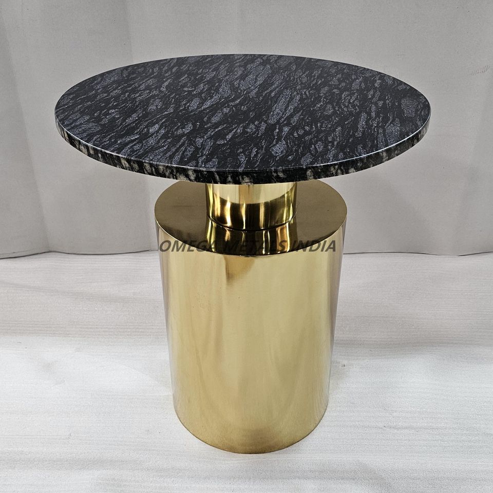 Mesa Auxiliar Moderna y Elegante que Combina una Superficie de Mármol Negro Resistente con una Base Dorada Reflectante para Mejorar la Decoración del Hogar