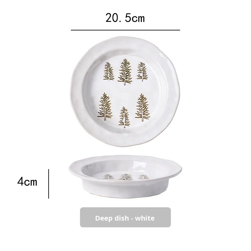 Juego de Vajilla Navideña Moderna con Diseño de Copos de Nieve en Relieve, Plato para Cena, Tazón de Postre y Taza de Cerámica Creativos y Sencillos para Presentación