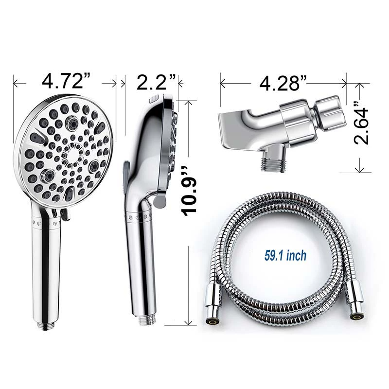Moderna pistola de ducha con filtro cromado, presurizada, con flujo ajustable, cabezal de ducha híbrido multifuncional.